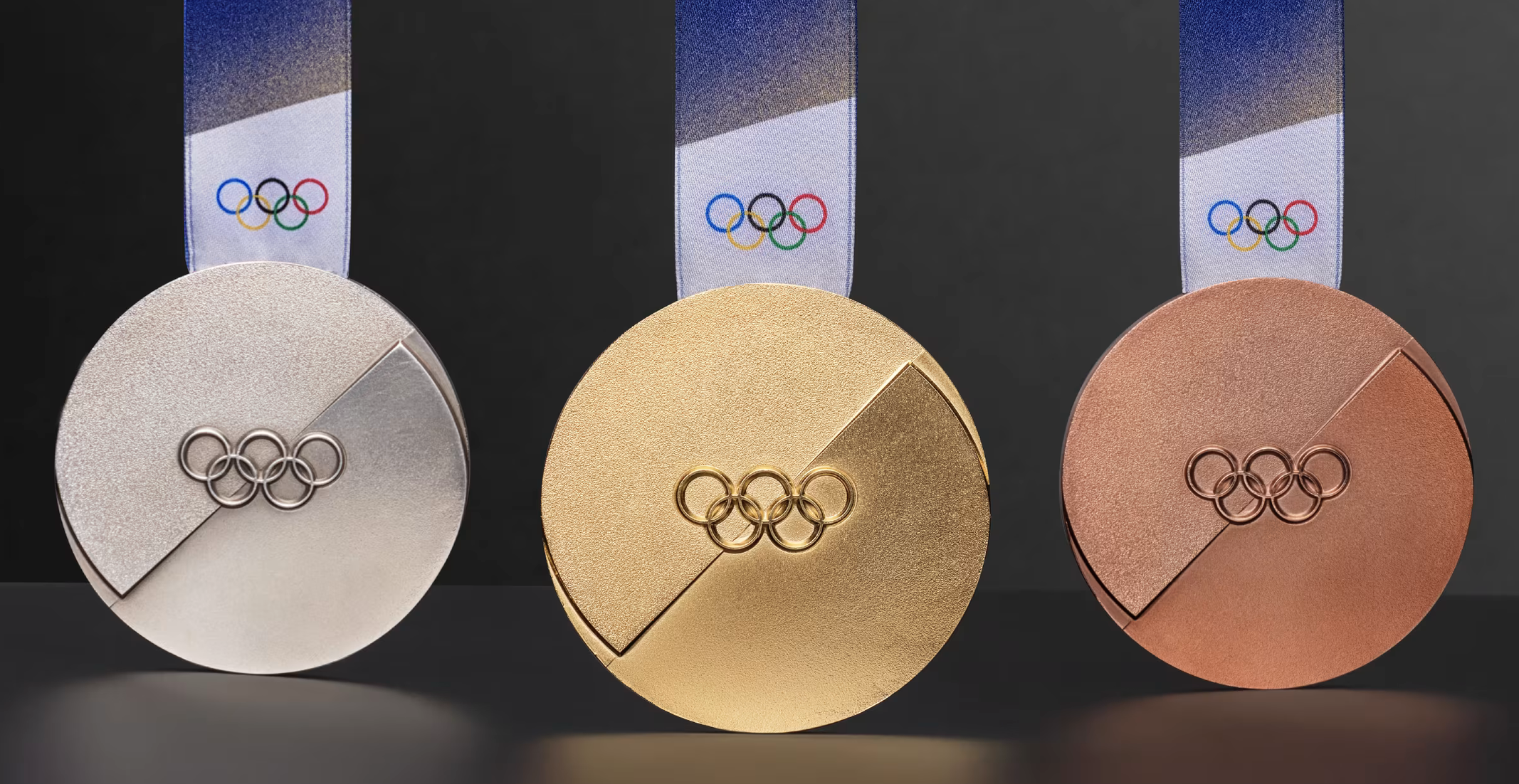 At each Olympic Games, the medal colors are all the same, but what they look like, their design, changes! And there’s a ribbon that the athletes can wear around their necks. It’s a big deal to win an Olympic medal.